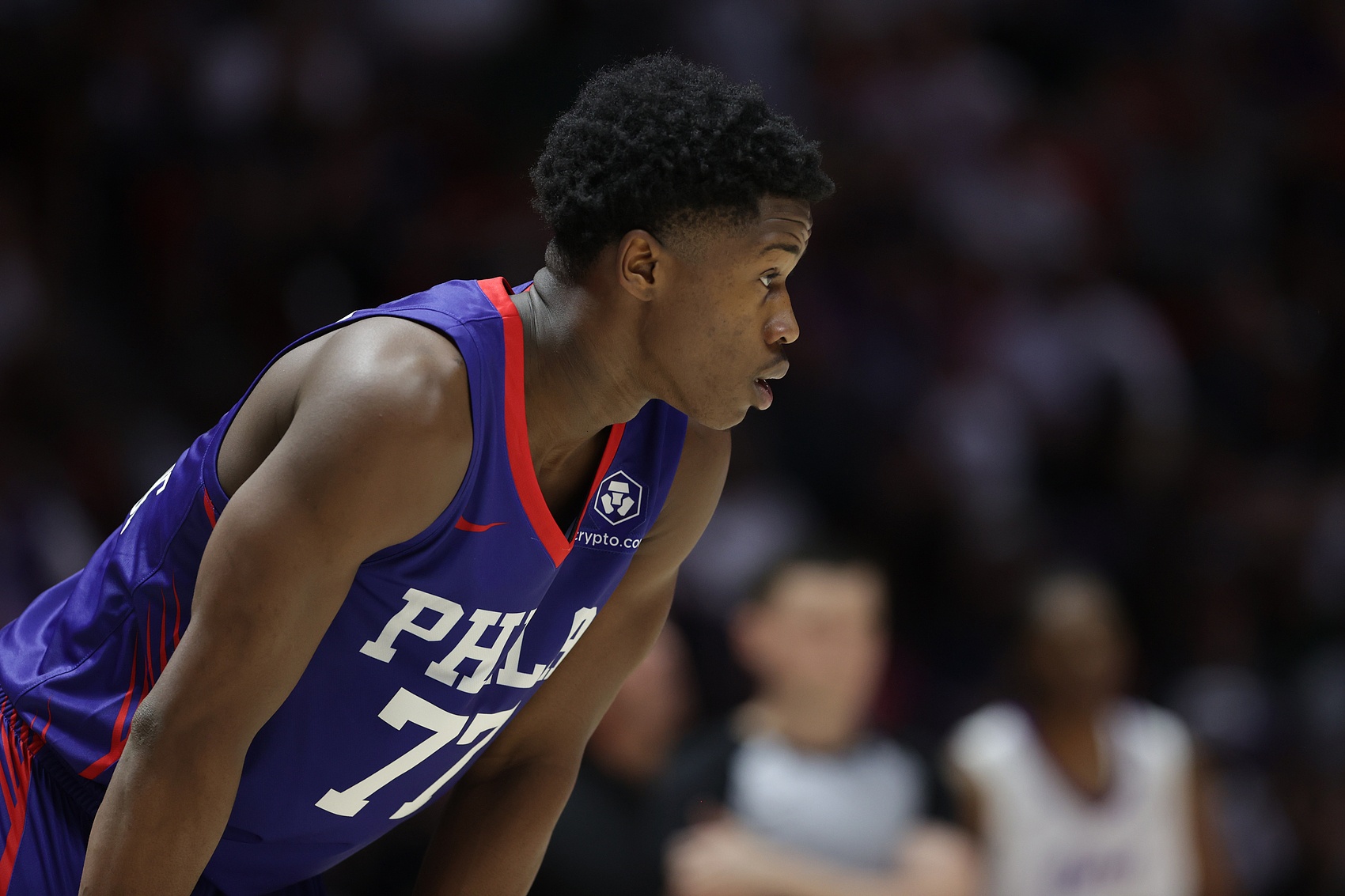上半场比赛,因左手拇指扭伤缺席过去4场夏季联赛的76人探花秀埃奇库姆迎来复出,但进攻端手感糟糕,一个运动战进球也没有。